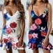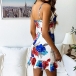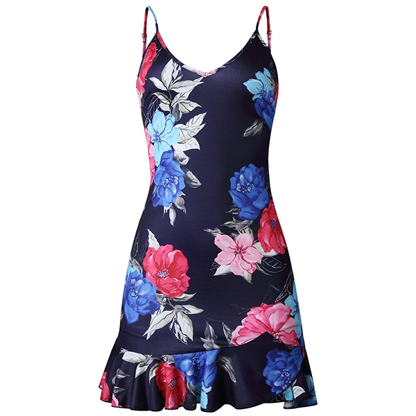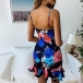 Sexy Backless V-neck Ruffle Hem Slim Fit Printed Sling Dress