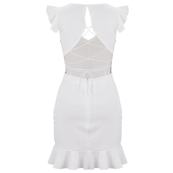 Its sexy and alluring design details like backless,v-neck and ruffle hem design will offer you a flirty look.