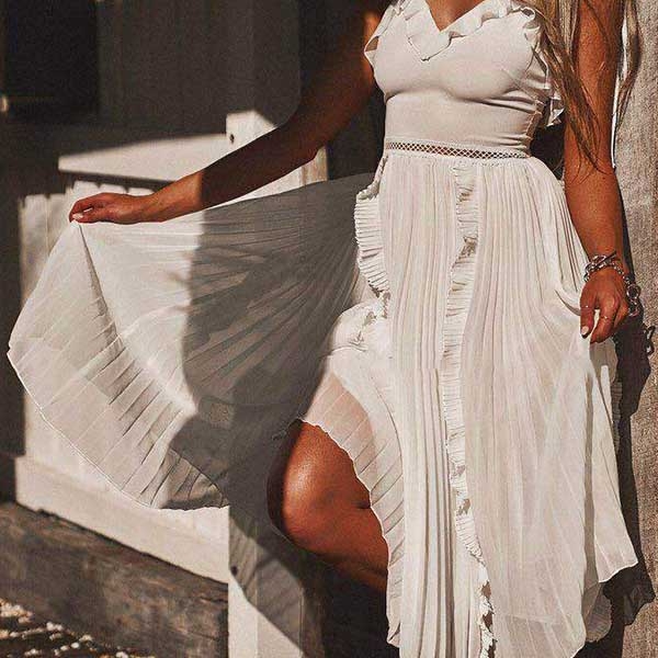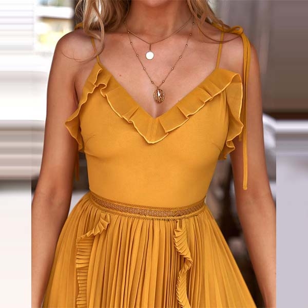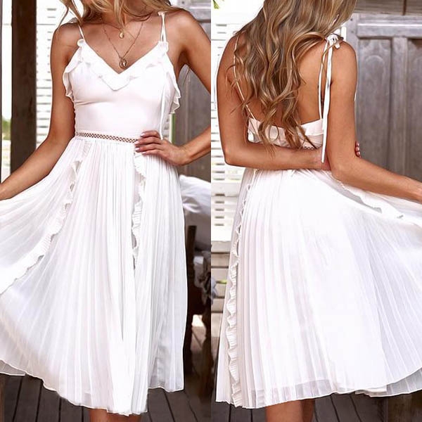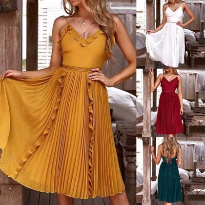 with backless,v-neck and ruffle design,which make this piece look so attractive. The pleated design