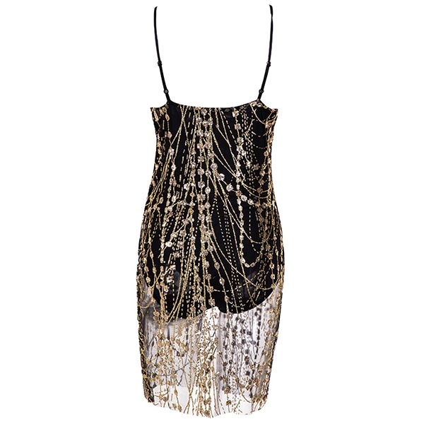 like backless,sequin spliced details and fit silhouette design can easily express your seductive side.