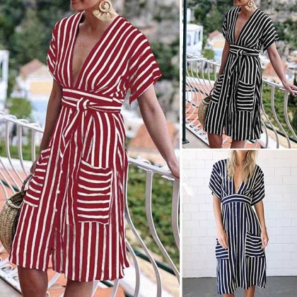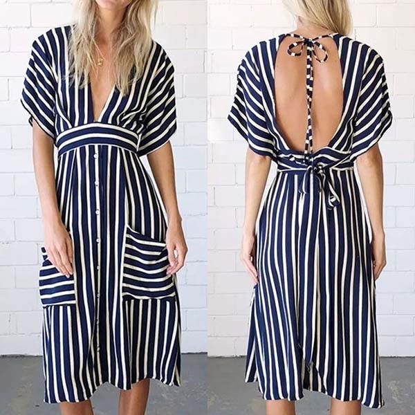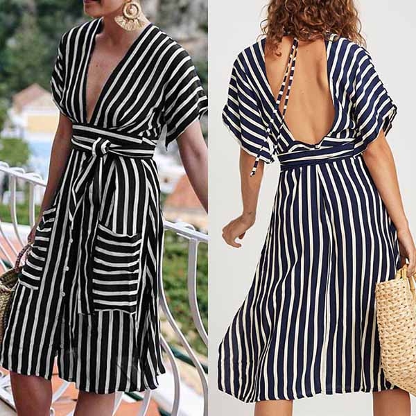 Easy to achieve for a sexy and charming weekend look when you dress yourself up with this striped dress.