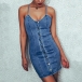 Cultivate your sexy and seductive curve through this denim dress. Sling style,with backless,v-neck and
