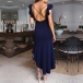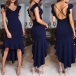 You can easily achieve for an alluring look with the help of this dress. The backless,v-neck,high-low