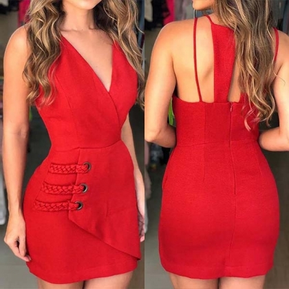 Sexy Backless V-neck Sleeveless Slim Fit Dress(It falls small)