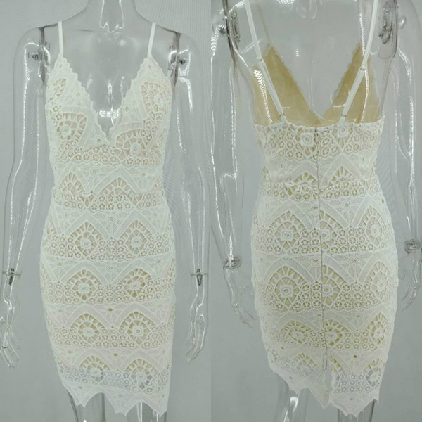 lace dress. Sling style,with backless,v-neck and a fit silhouette,this delicate lace dress is perfect fit for