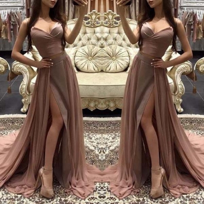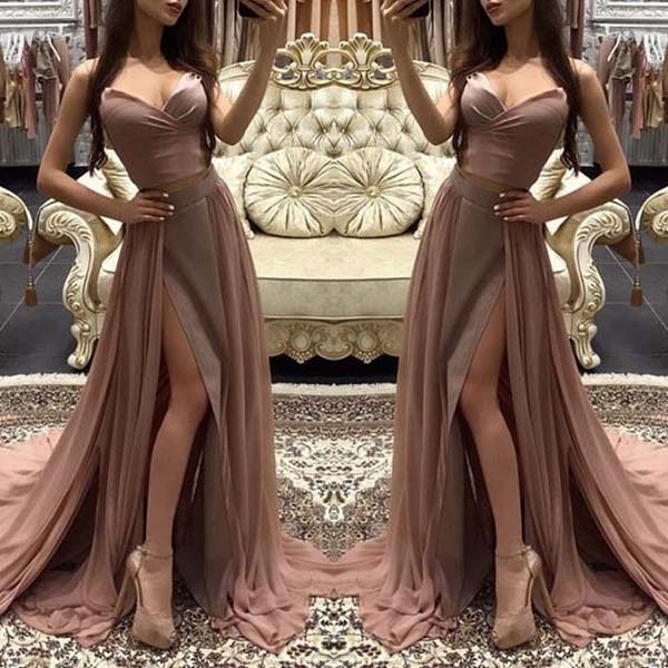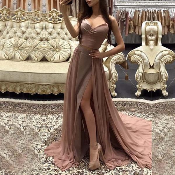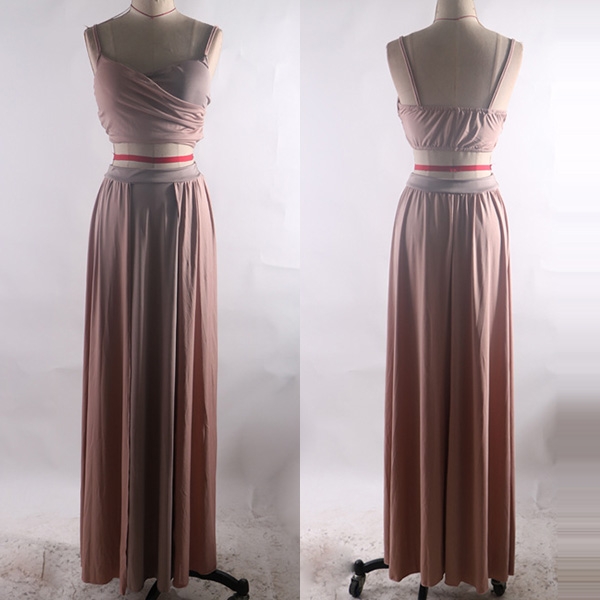 v-neck sling crop top and a high waist slit hem skirt,this two-piece set is sure to help you win more eyes.
