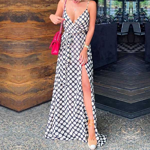 charming. Sling style,the backless,v-neck and slit hem design make this piece look more alluring.