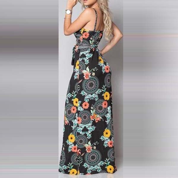 Denna klänning är designad med färgglada tryckta detaljer, som kan ge dig en stark visuell effekt,
