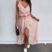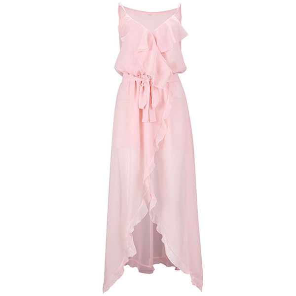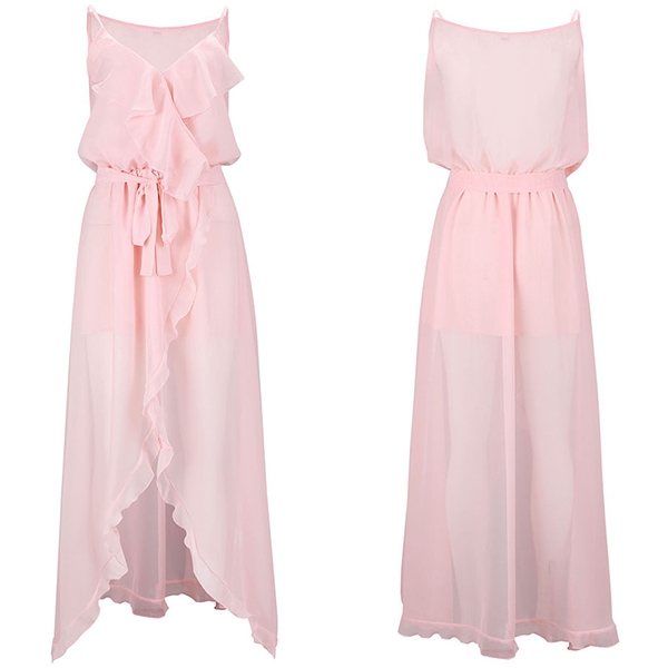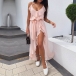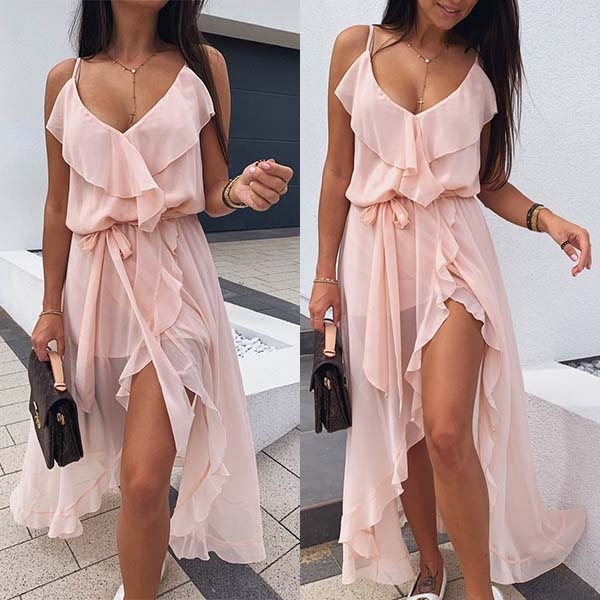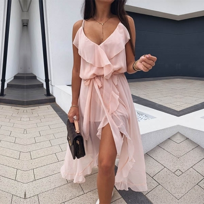 Sexy Backless V-neck Slit Hem Ruffle Sling Dress