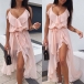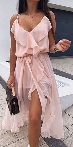 like backless,v- neck,slit hem and ruffle design will offer you a