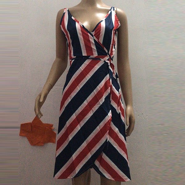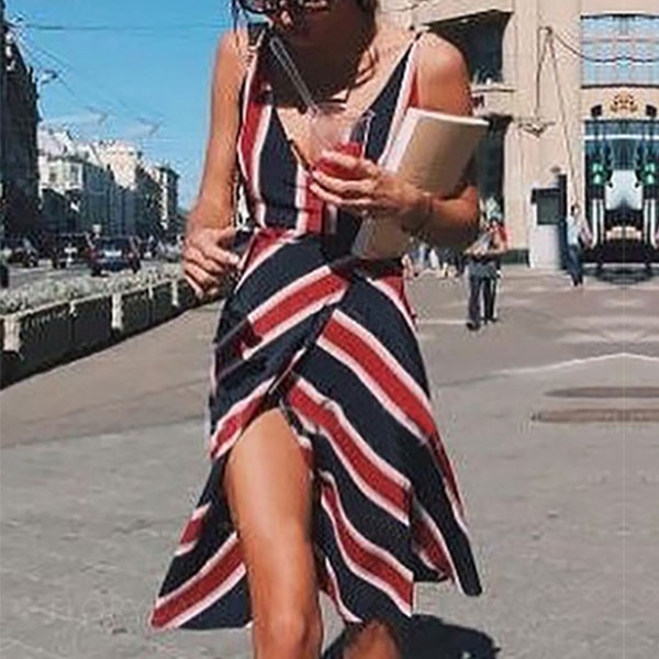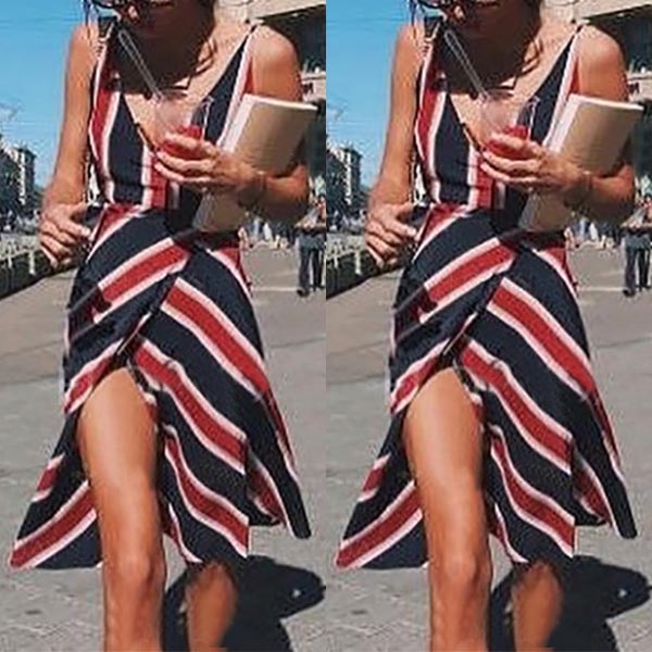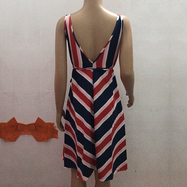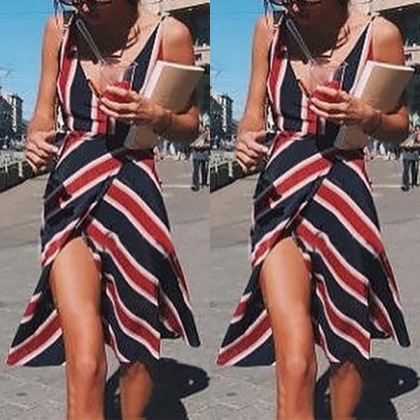 Wanna a beautiful trip look? Then you can slip into this sleeveless dress. Striped style,the backless,
