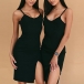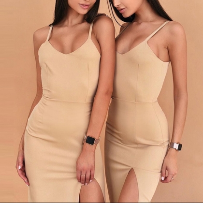 Sexy Backless V-neck SLit Hem Slim Fit Sling Dress