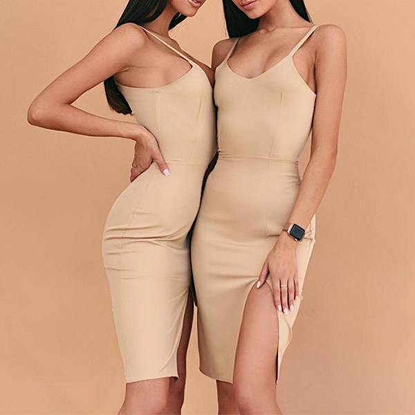 Sling style,its alluring design details like backless,v-neck and slit hem design make this piece look so flirty.