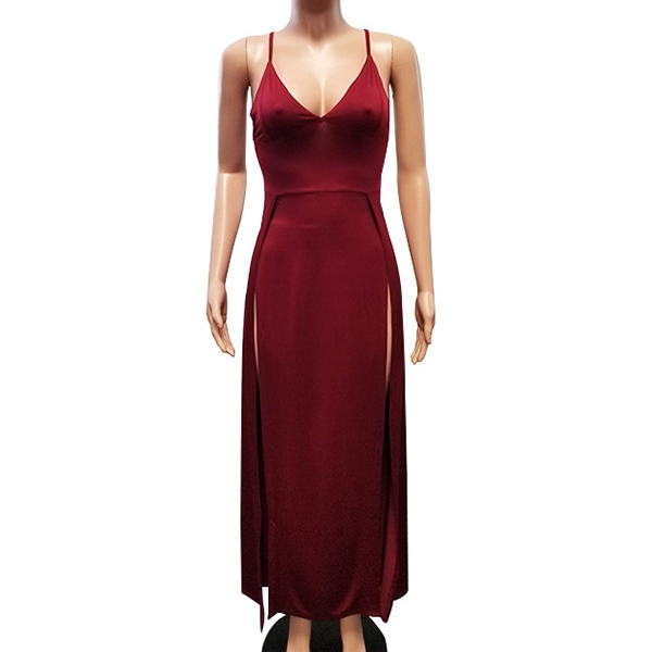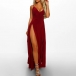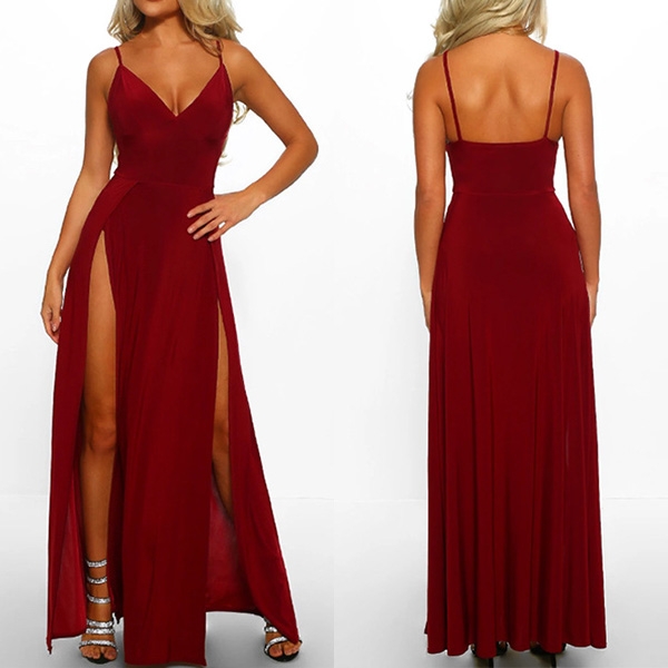 with backless,deep v-neck and slit hem design,sexy and alluring. Dress it up with your sexy heels and