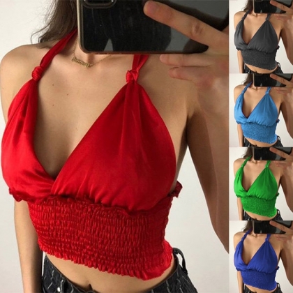 finished with v-neck and backless design,this halter top can showcase your sexy and charming side perfectly.