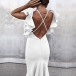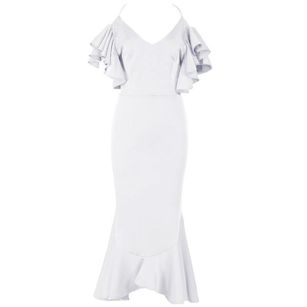 The solid color tone design can lend you a simple yet elegant vibe,while the backless,v-neck and ruffle