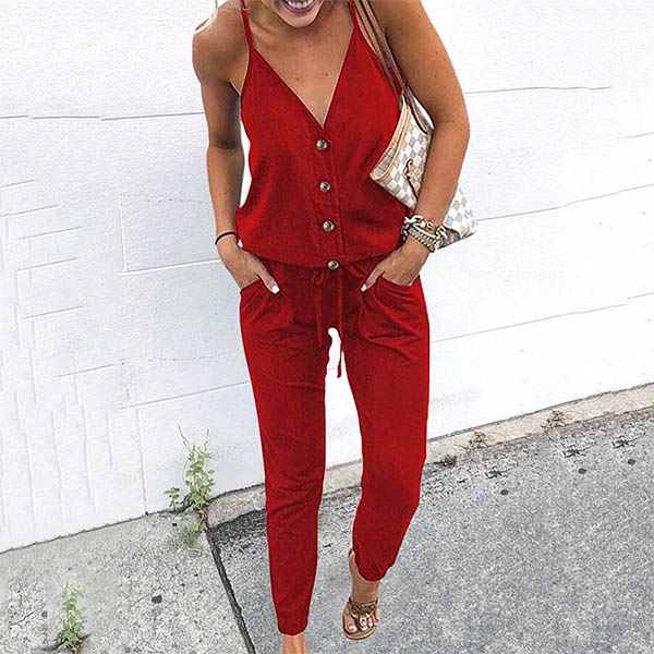 Sexy Backless V-Neck Solid Color Sling Jumpsuit