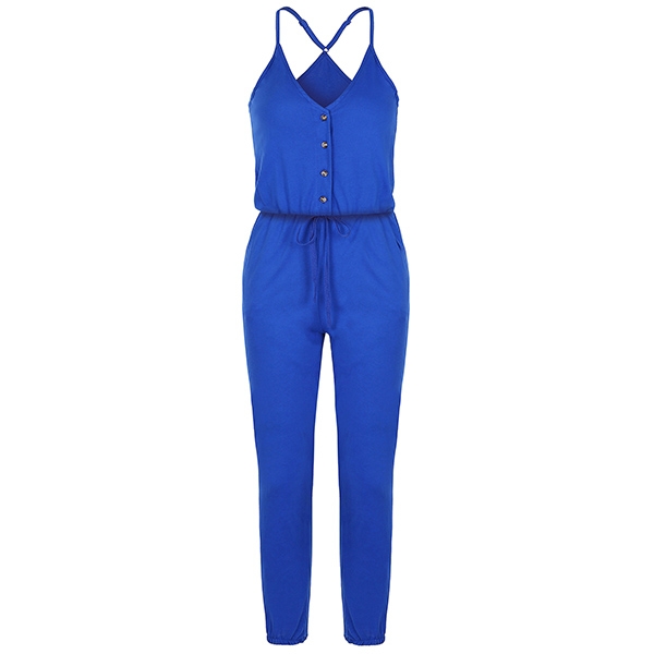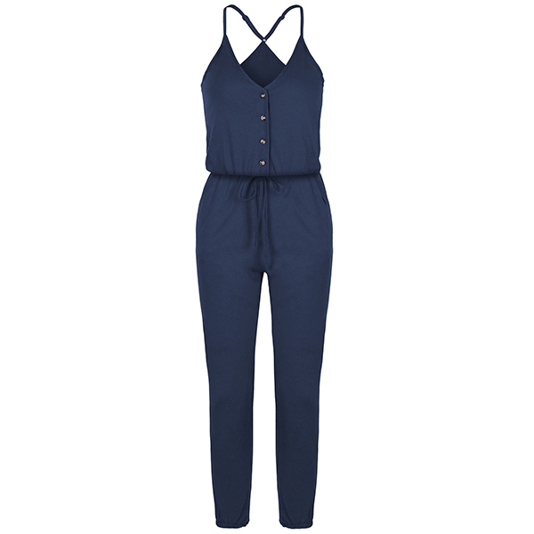 Different from most other jumpsuits,this piece comes with sling style,finished with v-neck and
