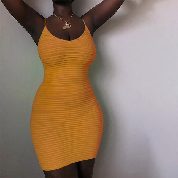 So how about this piece? This sling dress is crafted in a solid color,with backless and v-neck design,