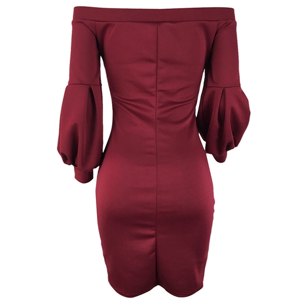 Exude your feminine appeal through this dress. Its alluring design details like boat neck,lantern sleeve and
