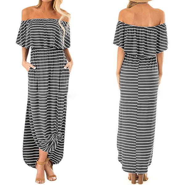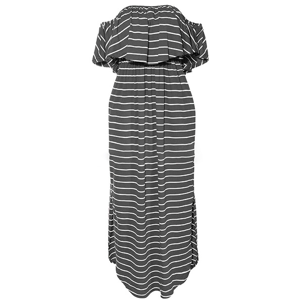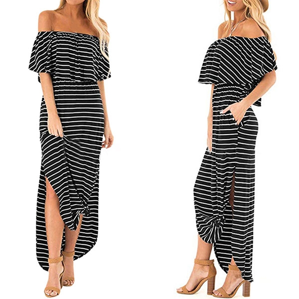charming and beautiful. Striped style,finished with boat neck,slit hem and high waist design,this piece