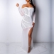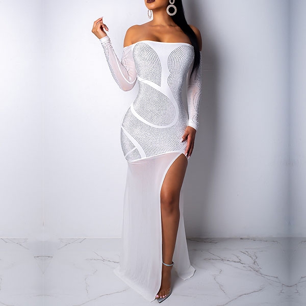 your team. It is finished with long sleeve,boat neck,slit hem and rhinestone spliced details,sexy yet alluring.