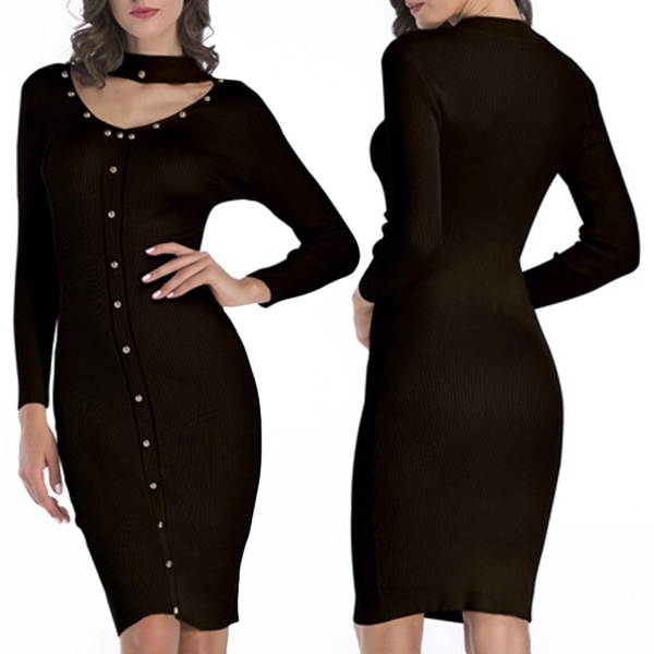 The most attractive design of this knit dress is the choker v-neck design,which not only exudes