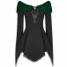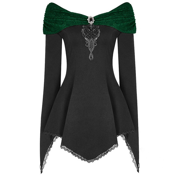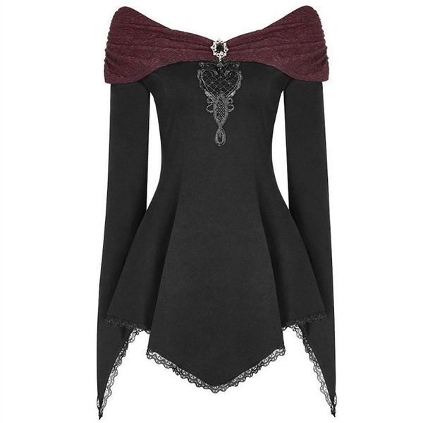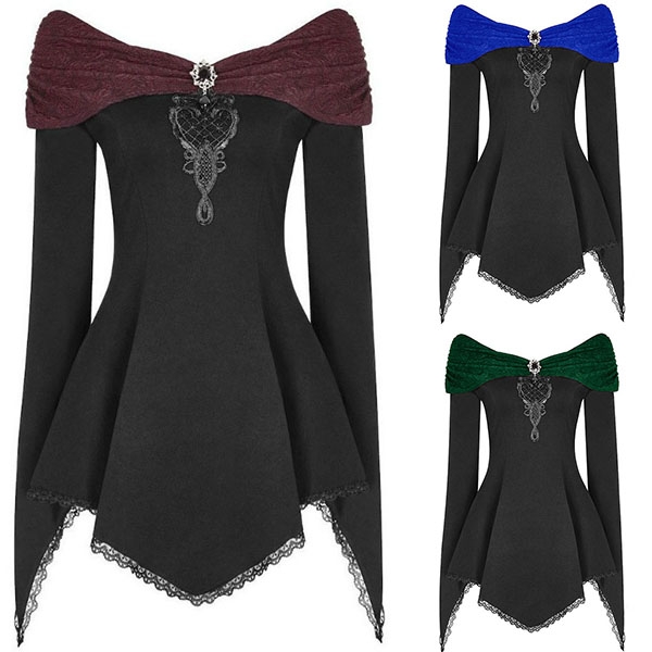 Only need one glance,you would be attracted by this chic and unique top. The contrast color boat neck,irregular hem and lace spliced details