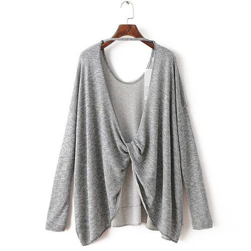 Finished with long sleeve,round neck,crossover backless and a loose silhouette,this t-shirt