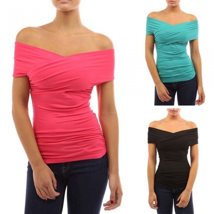 This t-shirt knows how to give you a sexy and flirty look. Comes with a solid color,the crossover