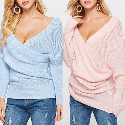 The sweater comes with a solid color,the crossover v-neck design can lend you a dash of sexy