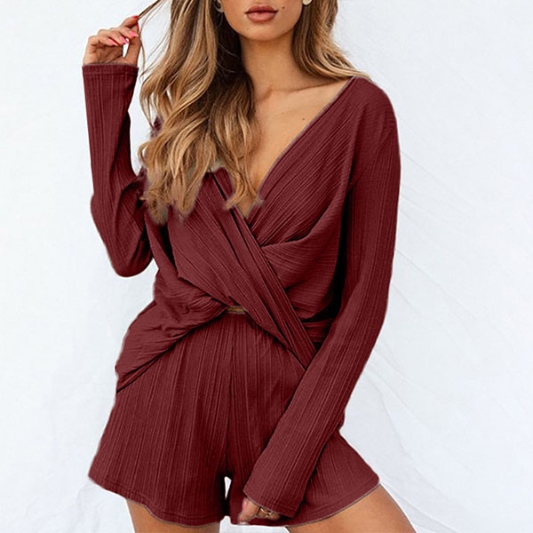 S : Bust : 92cm(36.22"); Hips : 97cm(38.19"); Sleeve : 56cm(22.05"); Top Length : 58cm(22.83"); Shorts Length : 32cm(12.6");