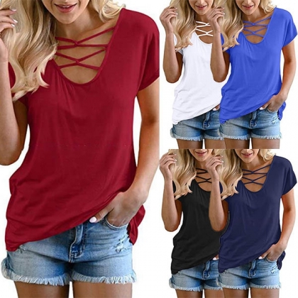 crossover v-neck and short sleeve design,chic yet stylish. If you wanna look more