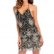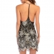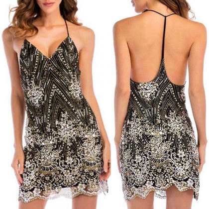 silhouette with an allover sequin spliced design, a deep V-neckline, Y-back, cami straps, go with your