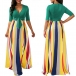 silhouette with a contrast color design, V-neckline, a muti-color stripe skirt, a self-tie design,