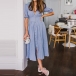 Designed with half sleeve,high waist and single-breasted design,this dress will display your beautiful side.