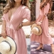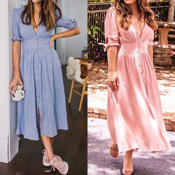 this dress. Boasts a solid color,simple yet generous,while the deep v-neck design will lend you a sexier look.