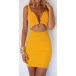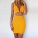 Sexy Deep V-neck Hollow Out Slim Fit Solid Color Dress