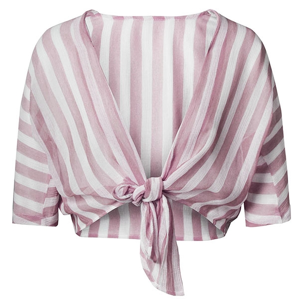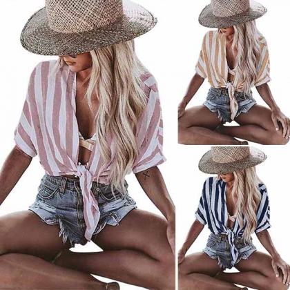 Designed with striped element,the deep v-neck and knotted hem design make it look so sexy