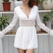 When you wanna update your image,you can turn to this romper for help! The deep v-neck and lace spliced