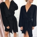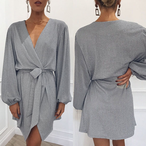 Sexy Deep V-neck Lantern Sleeve Irregular Hem Solid Color Dress