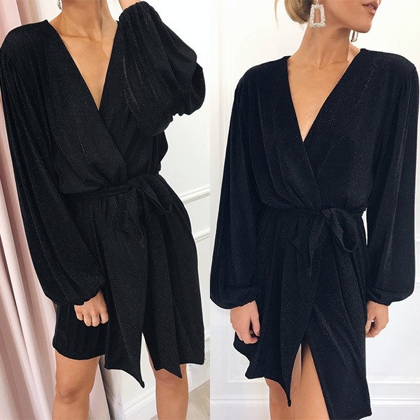 the lantern sleeve,deep v-neck and irregular hem design will give you a more charming look.
