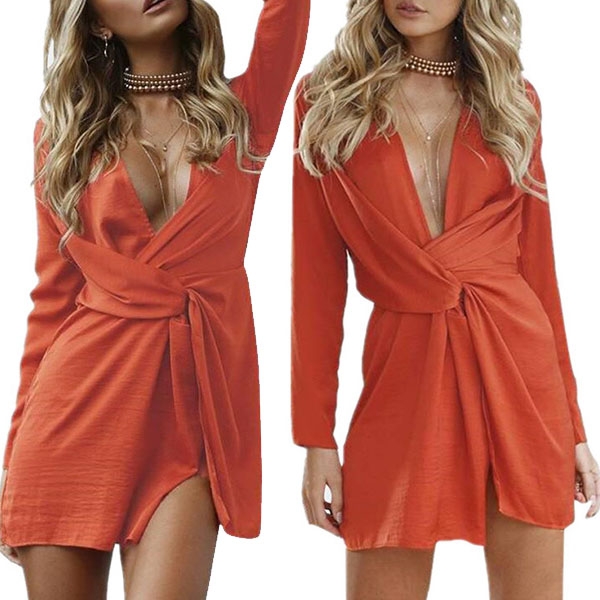with solid color,the deep v-neck and front twisted design will make this piece look sexy and distinctive.