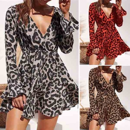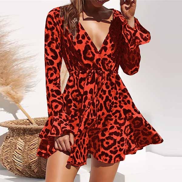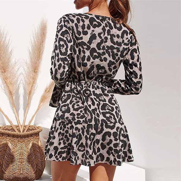 The leopard print details make this dress look so eye-catching and attractive,while the v-neck design