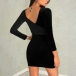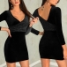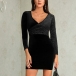 finished with long sleeve,deep v-neck and a tight silhouette,this dress definitely can sketch out your seductive curve.