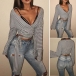 This crop top is designed with striped element,stylish yet popular. The deep v-neck and lace-up hem