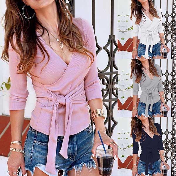 Solid color style,the deep v-neck and lace-up design make this piece look so sexy and distinctive.