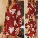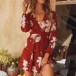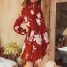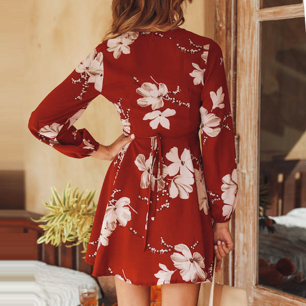 Features vibrant floral print,with long sleeve and deep v-neck design,simple yet charming.