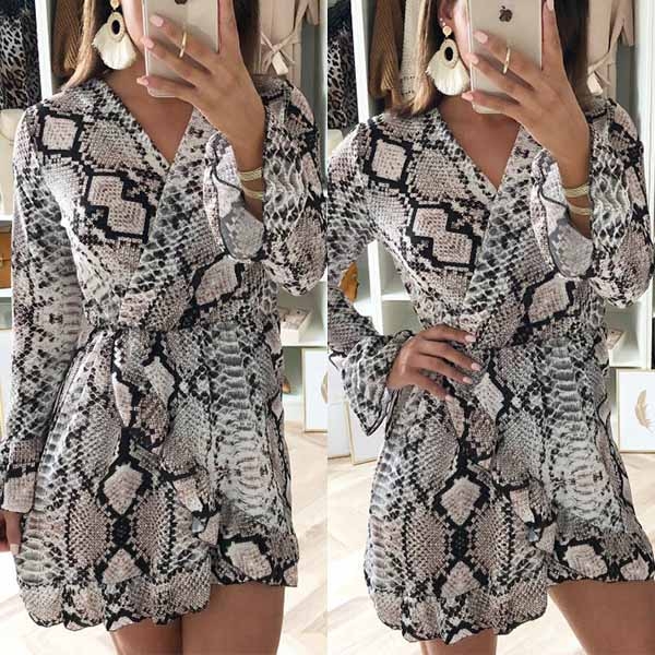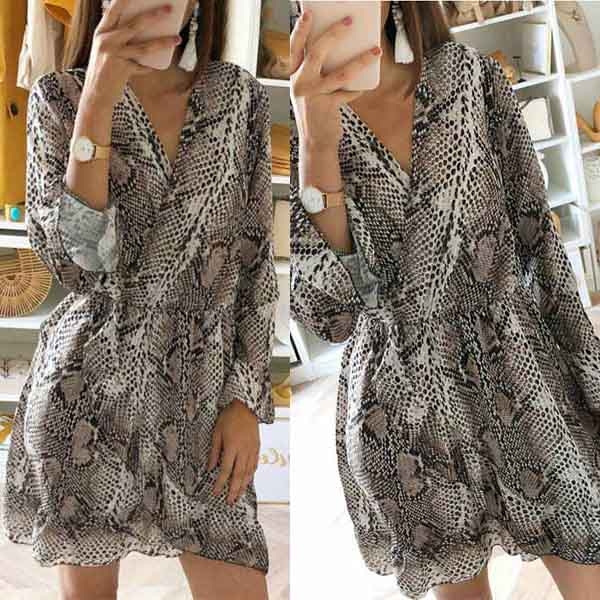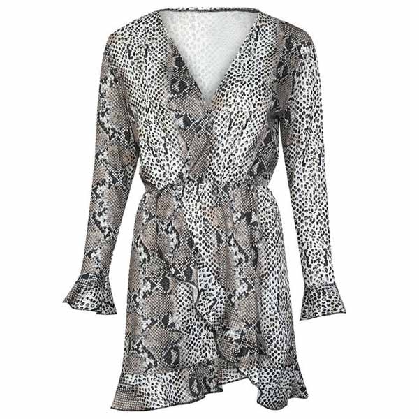 Any girl can look effortlessly charming and beautiful in this dress. The serpentine printed design makes it look so