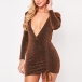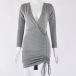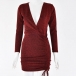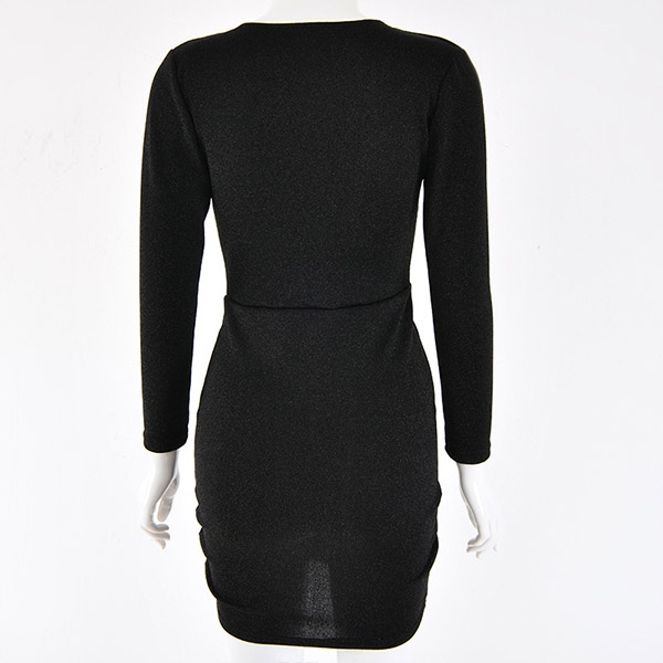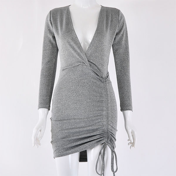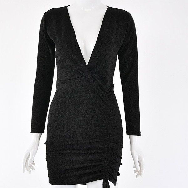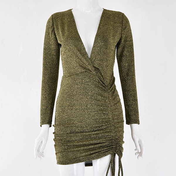 Enhancing your feminine appeal is an easy thing with this long sleeve dress. The deep v-neck and side-drawstring